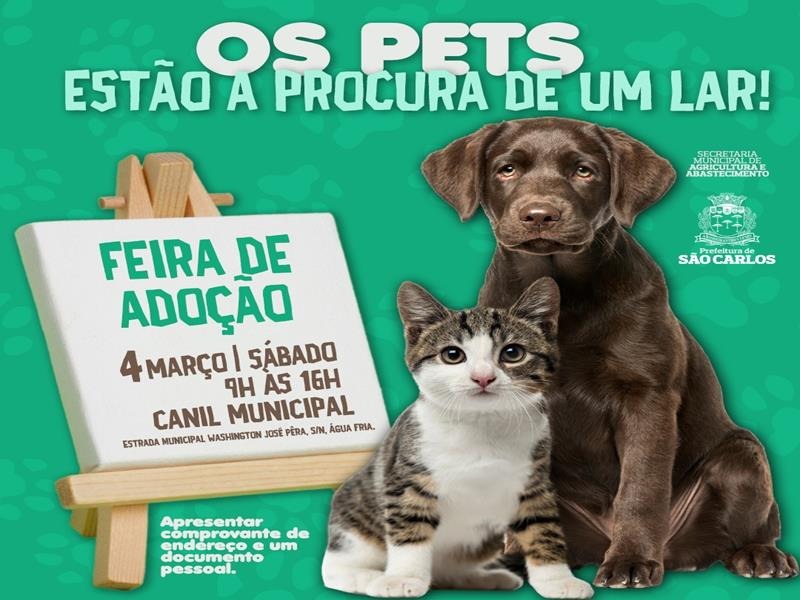 Da Redação – 02/03/2023 A prefeitura de São Carlos, por meio do Departamento de Defesa Animal da Secretaria Municipal de Agricultura e Abastecimento, realiza no próximo sábado(04), das 9h às 16h, mais uma Feira de Adoção Animal no Canil Municipal, localizado na estrada municipal Washington José Pêra, no bairro Água Fria. Mais de 200 […]