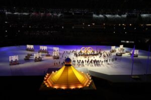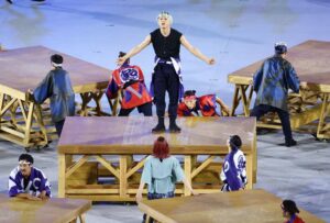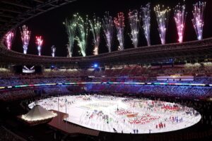 Atletas isolados e homenagem aos profissionais na linha de frente de combate a Covid-19. Apesar de toda a modernidade, os japoneses mostraram que é essencial unir o tradicional com o novo. Teve apresentação dos anéis olímpicos feitos em madeira reciclável, balé humano em 3D, iluminação via computador, drones colorindo a noite de Tóquio e personagens do mundo dos games.