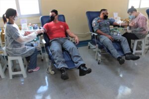 Capitão Rangel Gregório, Comandante dos Bombeiros em São Carlos, e demais bombeiros, em doação ao Banco de Sangue