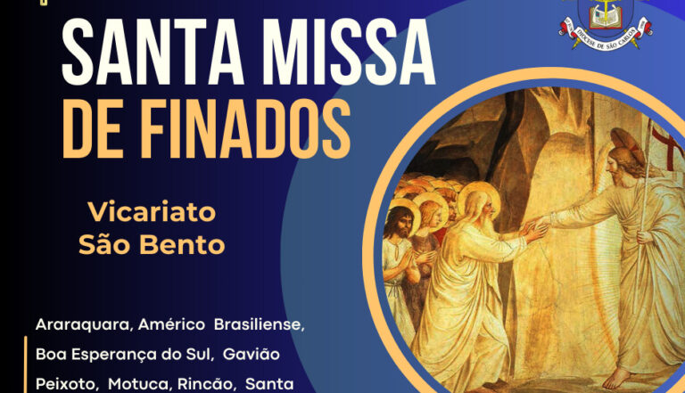 Confira abaixo os horários das missas de Finados no Vicariato São Bento, no dia 2 de novembro: Araraquara: Cemitério São Bento: 07h, 9h30, 11h e 16h30 Cripta da Basílica São Bento: 07h30 Basílica São Bento 12h00 Cemitério das Cruzes 08h, 10h e 16h30 Cemitério da Ressurreição 09h e 15h Cemitério Parque dos Lírios 08h30 Paróquia […]