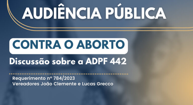 Na quinta-feira (5), a partir das 19 horas, no Plenário da Câmara Municipal, tem Audiência Pública para debater o aborto. Convocada pelos vereadores João Clemente (PSDB) e Lucas Grecco (União Brasil), a discussão será transmitida ao vivo pela TV Câmara (canal 17 da NET/Claro), além do YouTube e do Facebook do Legislativo. “Fomos procurados pela população sobre o debate trazido