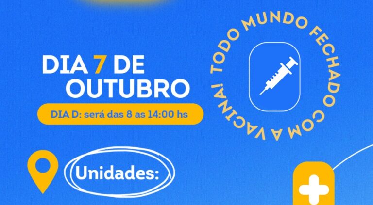 A Secretaria Municipal de Saúde realiza no próximo sábado (07/10), das 8h às 14h o “DIA D” da Campanha de Multivacinação em 6 unidades básicas de saúde (UBS’s) e 17 unidades de saúde da família (USF’s). A iniciativa é mais uma etapa do Movimento Nacional pela Vacinação, iniciado em fevereiro pelo Governo Federal, com o […]
