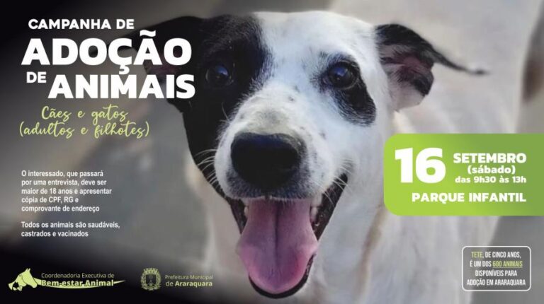 O Centro de Adoção Permanente Cão Gabriel, no Parque Infantil, recebe neste sábado (16), das 9h30 às 13h, mais uma edição da Campanha de Adoção de Animais. A ação é realizada pela Prefeitura Municipal de Araraquara por meio da Coordenadoria de Bem-Estar Animal da Chefia de Gabinete. Vale salientar que, se chover, a campanha terá […]