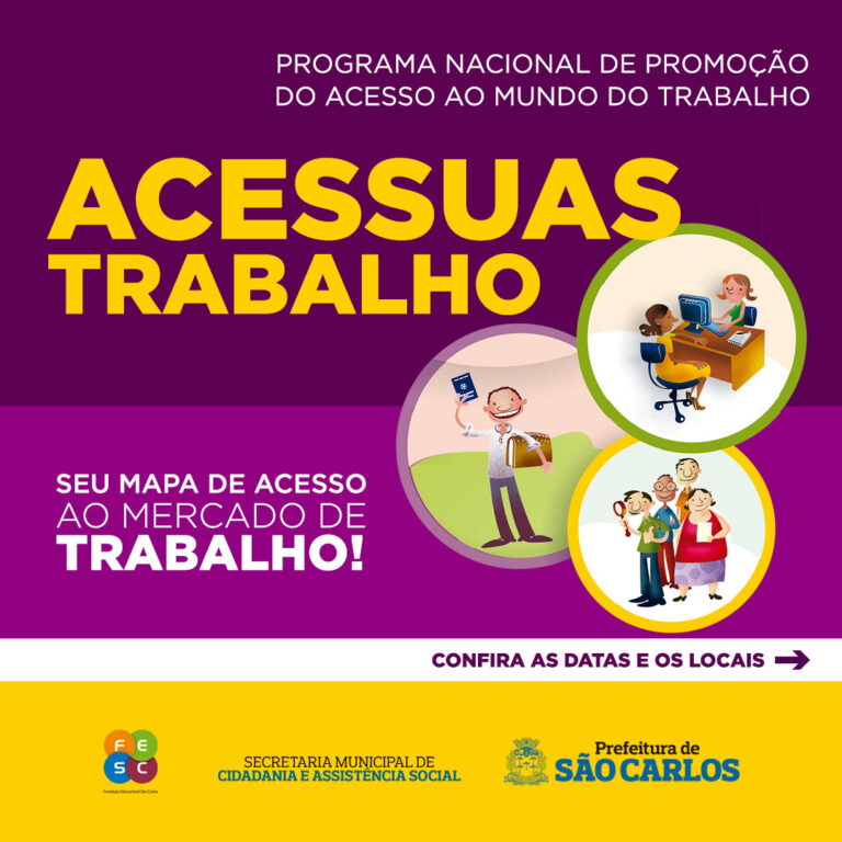 A Secretaria Municipal de Cidadania e Assistência Social (SMCAS), pasta que executa o Programa Nacional de Promoção ao Acesso ao Mundo do Trabalho – ACESSUAS, em convênio com a Fundação Educacional São Carlos (FESC), informa que estão abertas as inscrições para oficinas. O objetivo do Programa ACESSUAS é promover o acesso dos usuários dos Serviços […]
