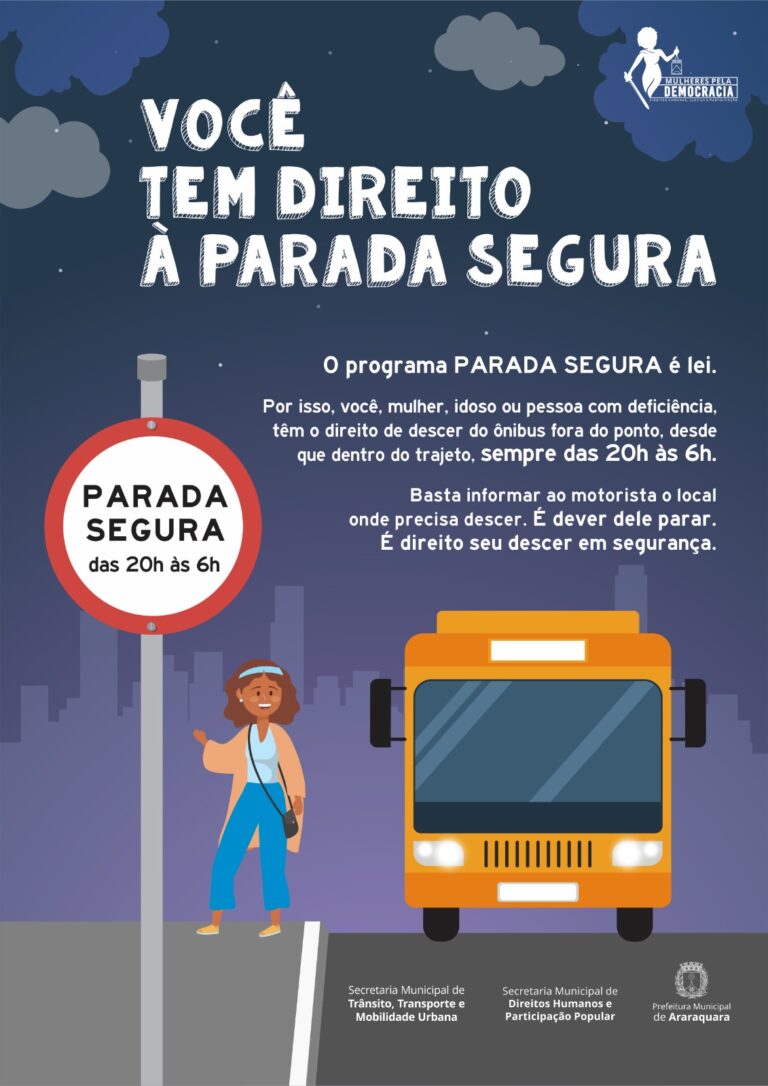 Da Redação 30/03/2023 Em mais uma ação que visa valorizar o mês internacional de luta das mulheres, a prefeitura de Araraquara lançou a Campanha “Parada Segura”, que consiste em oferecer às mulheres que utilizam o transporte coletivo, a possibilidade de descer fora do seu ponto, desde que dentro do trajeto, das 20h às 6h. […]