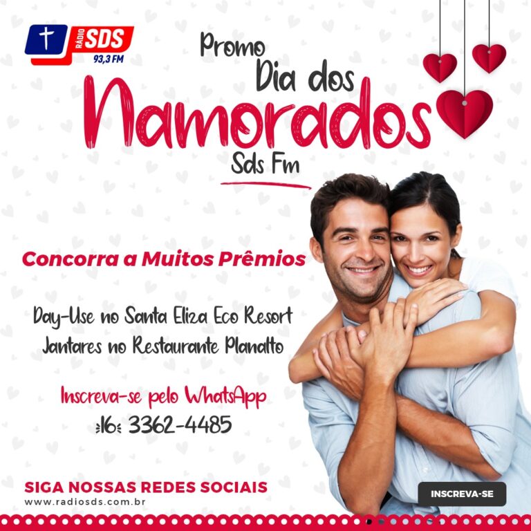 PROMOÇÃO ENCERRADA A Rádio SDS lança mais uma promoção para todos os ouvintes Promoção Dia dos Namorados SDS FM Serão 2 Jantares no Restaurante Planalto (para o casal) e 2 Day-Use no Santa Eliza Eco Resort (para o casal) Inscrições serão pelo whatsapp no (16) 3362-4485 Curta e compartilhe nas redes sociais Facebook: @radiosdsfm93.3 […]