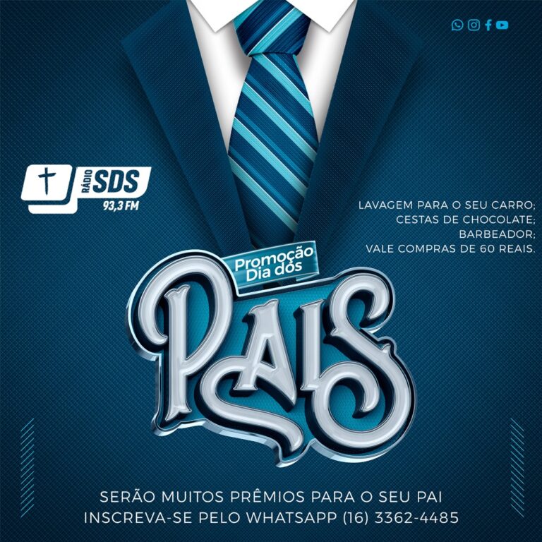 O Dia dos Pais está chegando, e a sua SDS FM já preparou uma SUPER PROMOÇÃO para você, PAPAI ou para você presentear o seu paizão Corra para o WhatsApp SDS (16) 3362-4485, mande seu nome e cidade ((( CASO SEJA PAI ))), se você for inscrever o seu paizão, mande seu nome e cidade […]
