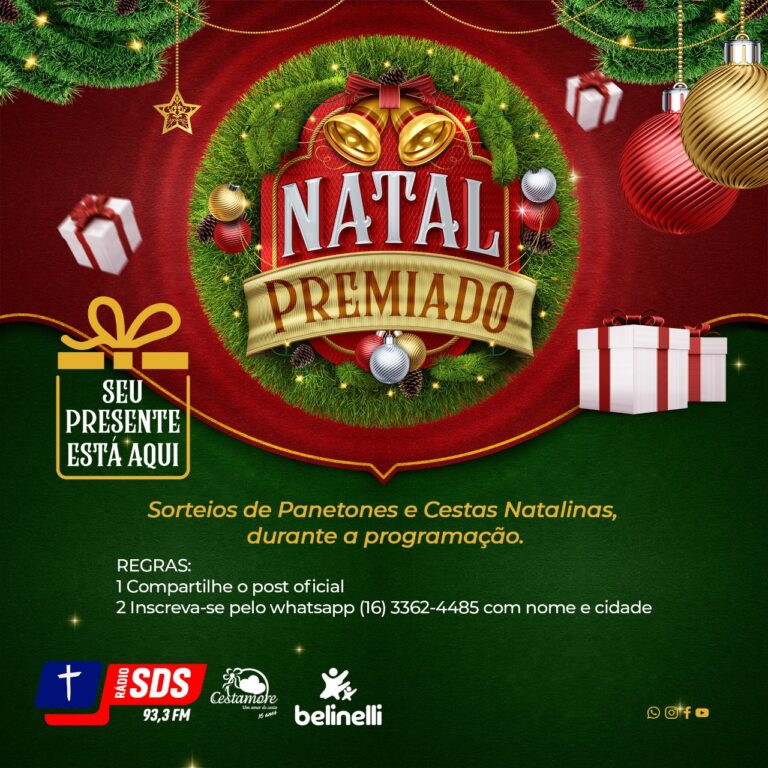 PROMOÇÃO ENCERRADA A promoção mais aguardada da região chegou aqui na sua rádio Diocesana Agora é oficial, está no ar a promoção “Natal Premiado SDS” Durante nossa programação você concorre a chocotones deliciosos e maravilhosas cestas natalinas !!! Atenção para regras: Compartilhe o banner da promoção e envie uma mensagem pelo whatsapp para (16) 3362-4485 […]