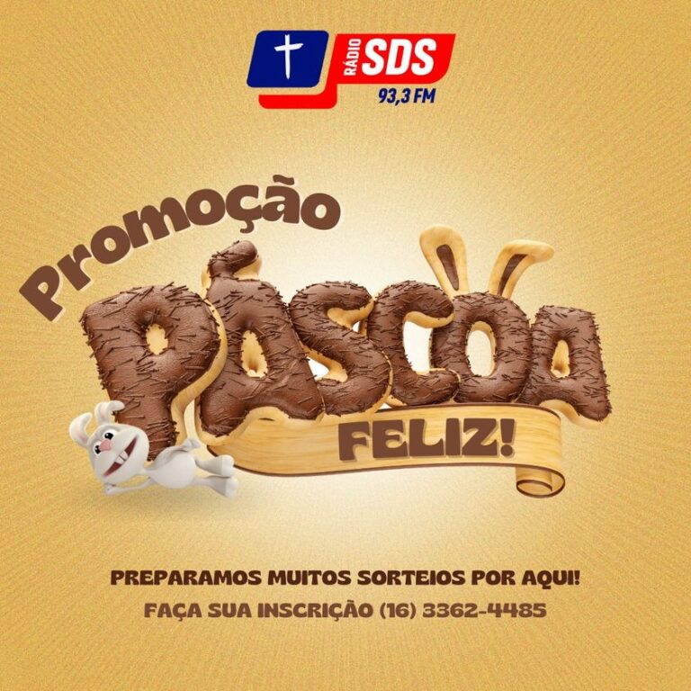 PROMOÇÃO VÁLIDA DE 21/03 A 13/04/2022 PROMOÇÃO PÁSCOA PREMIADA DA SDS FM A SDS FM dará muitos ovos de Páscoa para você ouvinte, e para participar é fácil. ☑️ Mande uma mensagem de texto ou de áudio no WhtasApp (16) 3362-4485 com nome e cidade !!! ☑️ Curta nossa página no […]