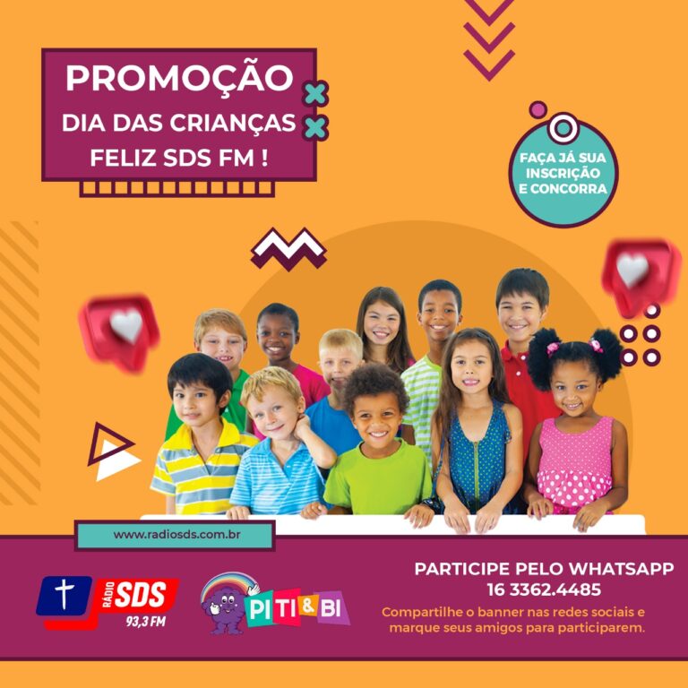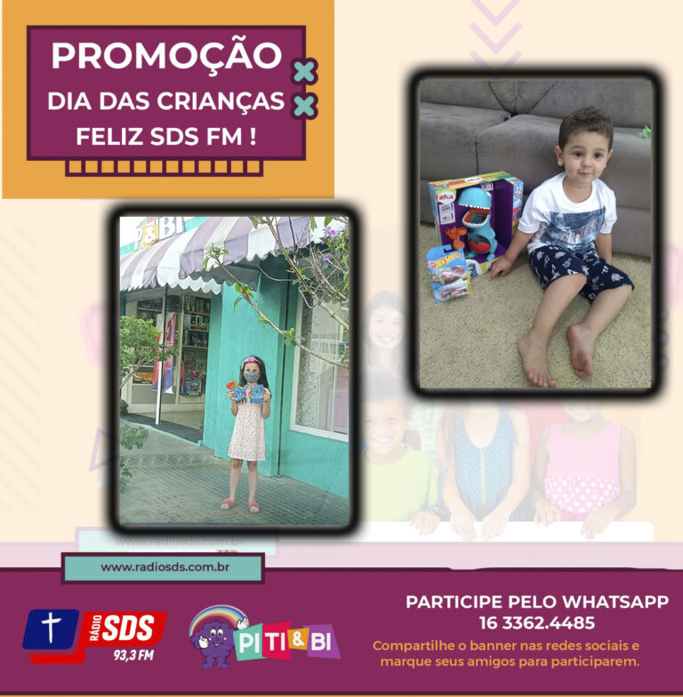PROMOÇÃO ENCERRADA Na SDS FM a criançada tem motivos de sobra para fazer a festa! Promoção Dia das Crianças FELIZ A rádio das grandes promoções e loja PiTi&Bi vão sortear 2 vales brinquedos no valor de R$ 100 reais cada. Para participar dos sorteio, Inscreva-se pelo WhatsApp (16) 3362-4485, curta e compartilhe o banner […]