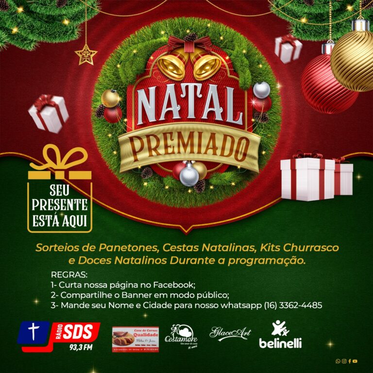 PROMOÇÃO ENCERRADA A promoção mais aguardada da região chegou aqui na sua rádio diocesana Agora é oficial, está no ar a promoção “Natal Premiado SDS” Durante nossa programação você concorre a chocotones deliciosos, cestas natalinas, kits churrasco e doces natalinos. Atenção para regras: Curta nossa página, Compartilhe o banner da promoção e envie uma […]