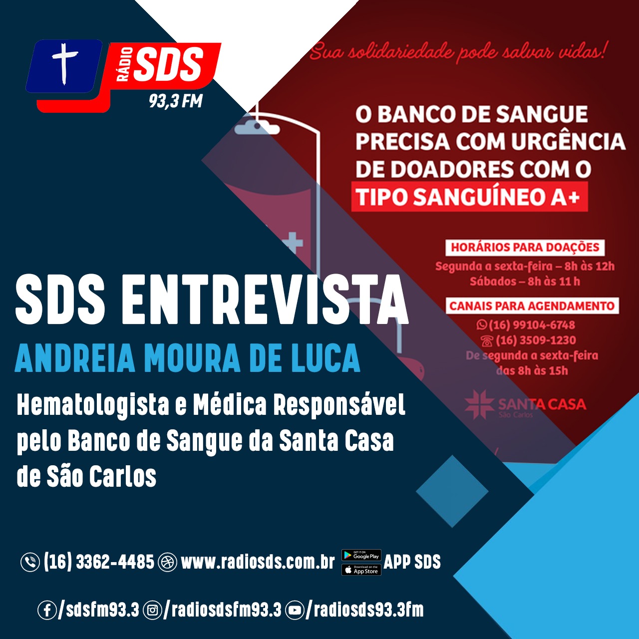 E no Jornal SDS desta quinta-feira(15) a médica responsável pelo Banco de Sangue da Santa Casa de São Carlos, Dra. Andreia Moura de Luca, concedeu entrevista por telefone e falou da importância da campanha e da situação crítica do estoque de sangue