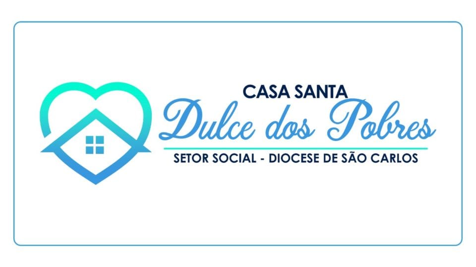 #paratodosverem: logo de um coração com cores nas tonalidades verde claro e azul, dentro do coração um triângulo nas mesmas cores com quatro quadrados ao centro, simbolizando uma casa. Ao lado o escrito nas mesmas tonalidades de cores: CASA SANTA. Dulce dos pobres. SETOR SOCIAL – DIOCESE DE SÃO CARLOS.