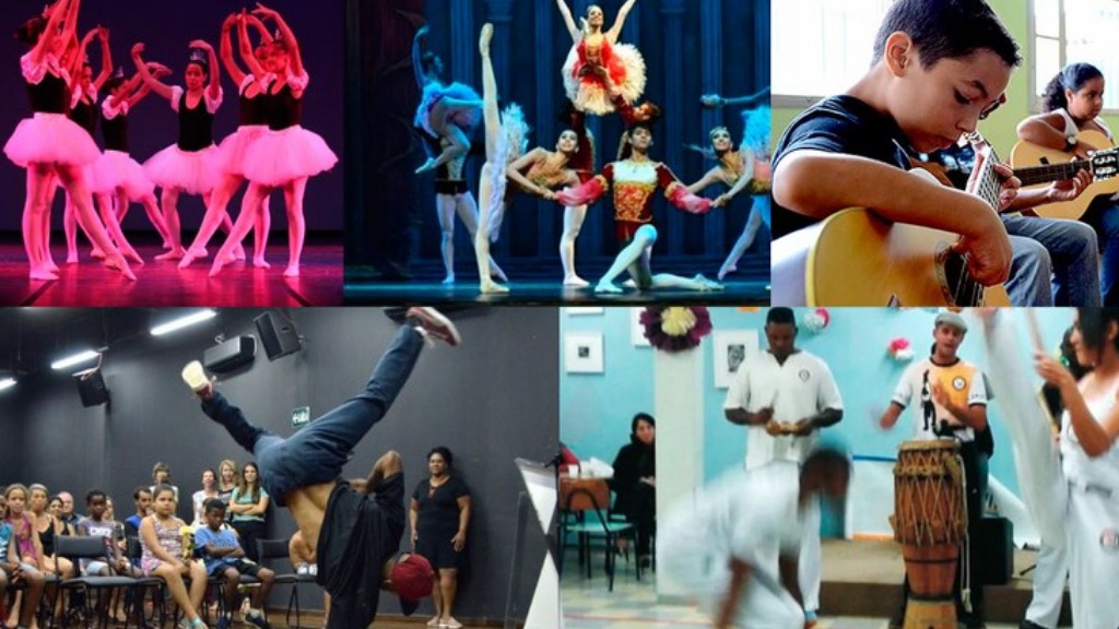 Em “música” são oferecidas as oficinas: violão popular para iniciantes (a partir de 9 anos), viola caipira (a partir de 15 anos) e técnicas vocais e canto popular (juvenil e adulto); na linguagem de “audiovisual” há: filmes de bolso – cinema com o celular (a partir de 12 anos) e produção e edição de vídeos com smartphone (a partir de 12 anos); em “circo”: artes circenses (a partir de 12 anos).