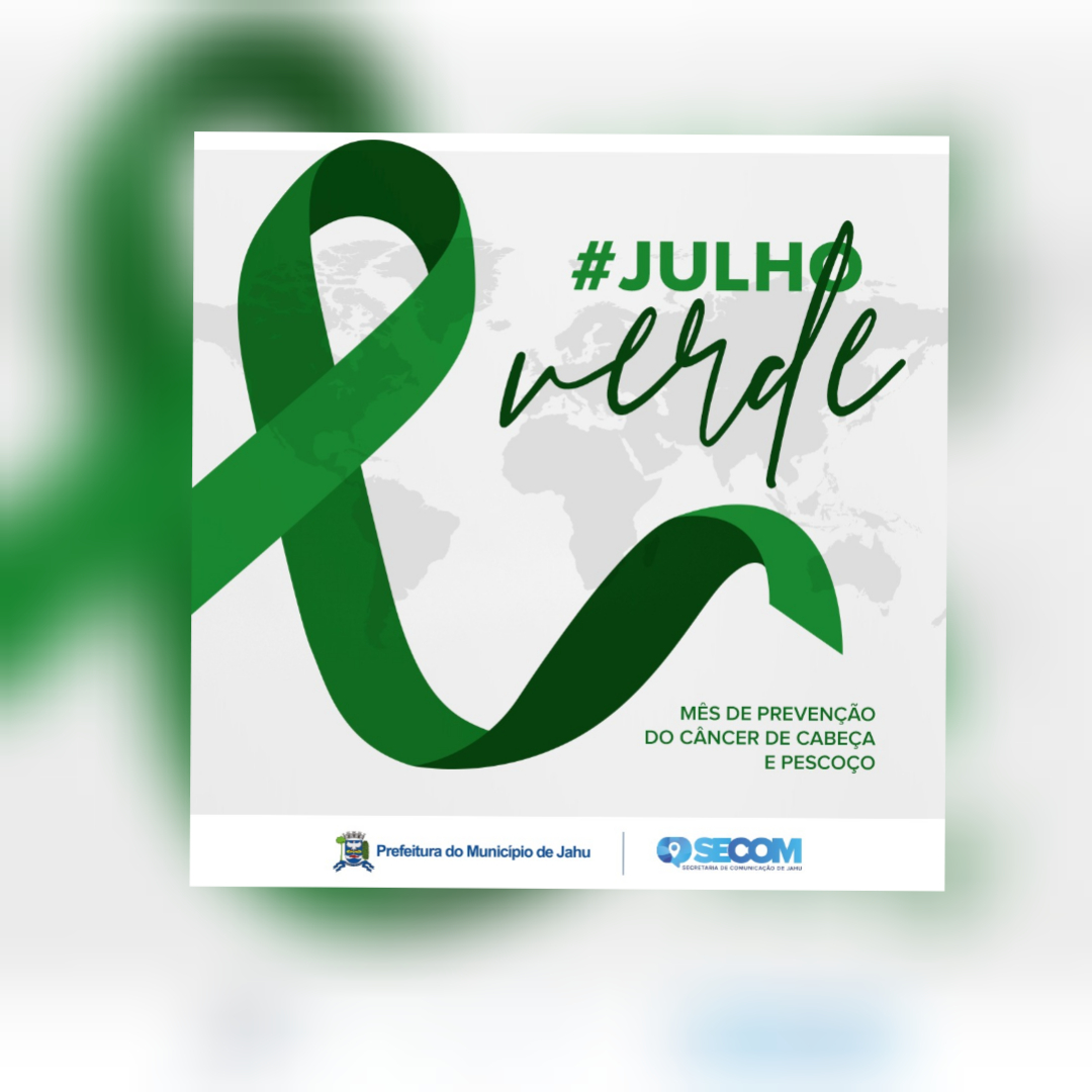 A Prefeitura do Município de Jahu adota, neste mês de Julho, a cor verde em suas redes sociais como forma de conscientizar sobre a importância de se prevenir o câncer de cabeça e pescoço.