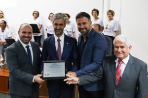 A concessão do título foi de autoria do vereador Tiago Parelli, com aprovação unânime do plenário.